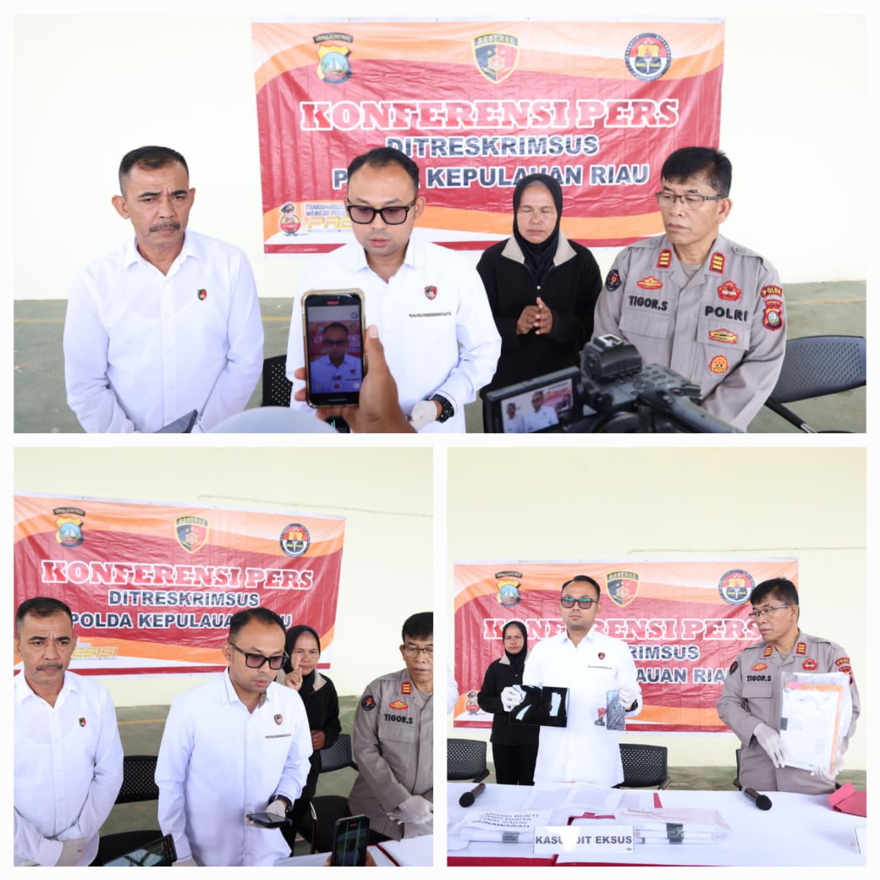 Konferensi pers dipimpin oleh Kasubdit 2 Ditreskrimsus Polda Kepri, Kompol Indar Wahyu Dwi Septiawan, S.I.K., M.H., didampingi Kanit Eksus Iptu Yudi Satriawan, S.H., serta Ps. Kaur Penum Subbid Penmas Bidhumas, AKP Tigor Sidabariba, S.H.