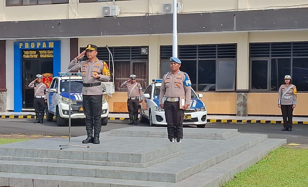 Kapolres Bitung AKBP Albert Zai, S.I.K., M.H. membacakan amanat Kapolda Sulawesi Utara Irjen Pol Dr. Roycke Harry Langie, S.I.K., M.H., yang menekankan pentingnya kesiapan personel dan perlengkapan menghadapi meningkatnya mobilitas masyarakat pada akhir tahun. Kapolda juga menyoroti tingginya angka kecelakaan lalu lintas di wilayah Sulut dalam dua bulan terakhir: