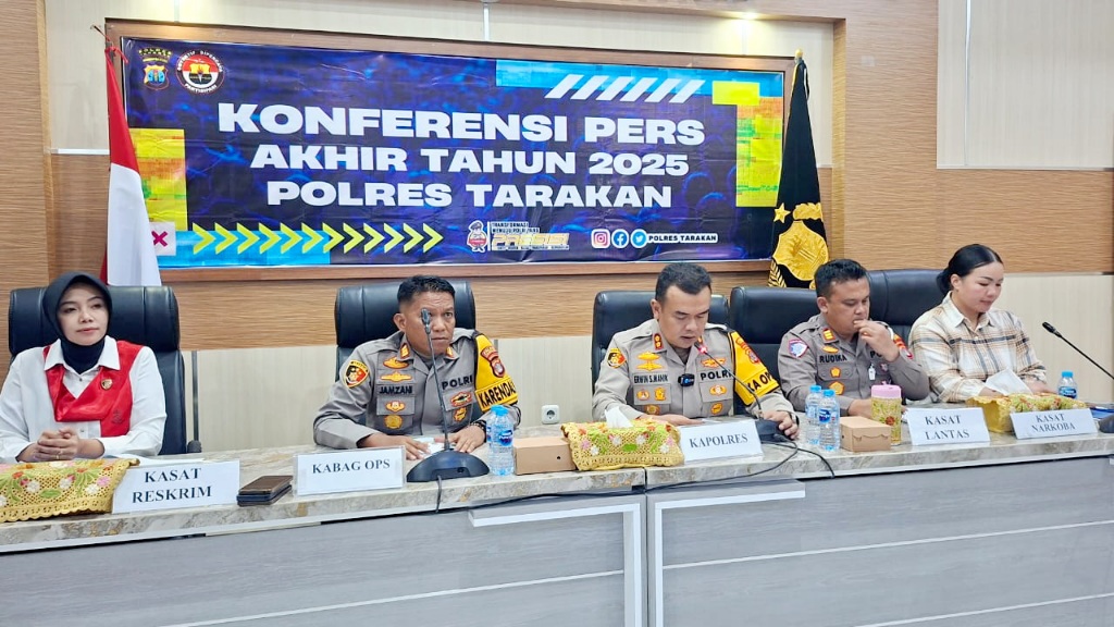 Hal tersebut disampaikan Kapolres Tarakan AKBP Erwin S. Manik, SH., S.I.K., MH., dalam Konferensi Pers Akhir Tahun 2025 yang digelar di ruang Vicom Sanika Satyawada, Mako Polres Tarakan, Rabu (31/12/2025).