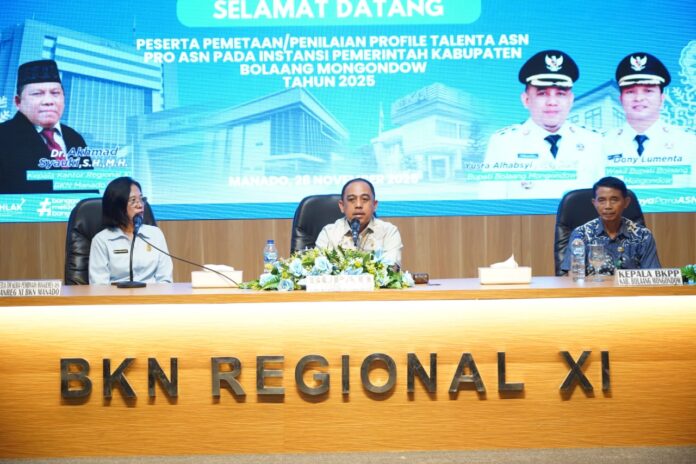 DetailNews.id – Bupati Bolaang Mongondow (Bolmong), Yusra Alhabsyi, SE., M.Si., menghadiri sekaligus membuka kegiatan Profiling Aparatur Sipil Negara (Pro ASN) di lingkungan Pemerintah Kabupaten Bolmong. Kegiatan tersebut berlangsung di Kantor Regional XI Badan Kepegawaian Negara (BKN) Manado, Jumat (28/11/2025).