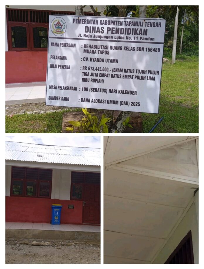 DetailNews.id, Tapanuli Tengah – Proyek rehabilitasi pembangunan ruang kelas SD Negeri 156488 yang berlokasi di Desa Muara Tapus, Kecamatan Manduamas, Kabupaten Tapanuli Tengah, diduga tidak sesuai dengan Rencana Anggaran Biaya (RAB) dan kuat dugaan terjadi mark-up anggaran.