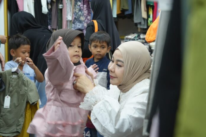 Ketua TP PKK Kaltara, Hj. Rahmawati Zainal, S.H., didampingi Wakil Ketua TP PKK Kaltara, Kornie Serliany Ingkong Ala, ST., secara langsung mendampingi anak-anak memilih pakaian dan perlengkapan Hari Raya. Setiap anak mendapatkan alokasi dana sebesar Rp500.000.