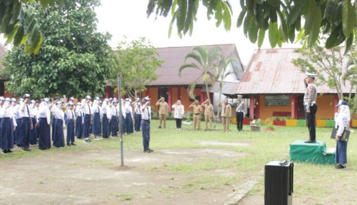 DetailNews.id, Kotamobagu – Suasana berbeda tampak di halaman SMP Negeri 9 Kotamobagu, Desa Poyowa Besar I, Kecamatan Kotamobagu Selatan, pada Senin (20/10/2025). Ratusan siswa mengikuti upacara bendera dengan penuh khidmat dalam rangka kegiatan “Police Goes to School” yang digelar oleh Satuan Lalu Lintas Polres Kotamobagu.