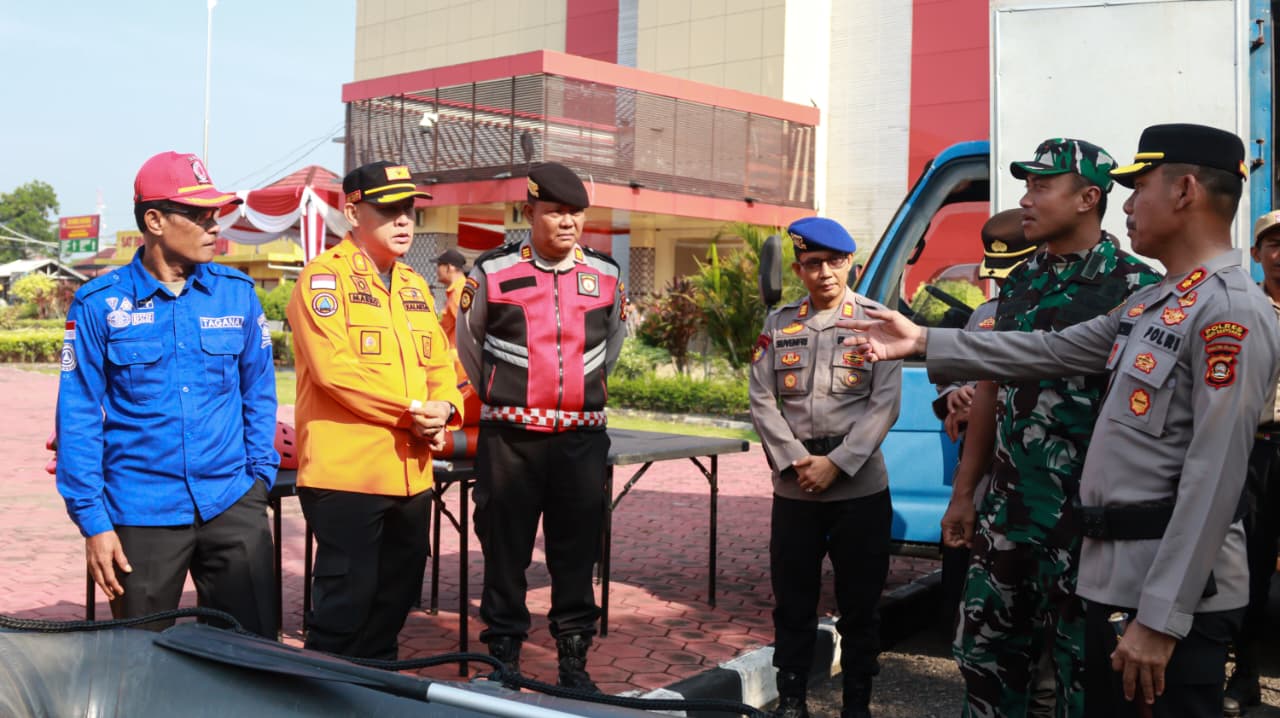 Kapolres Muba AKBP God Parlasro Sinaga dalam amanatnya membacakan pesan Kapolda Sumsel Irjen Pol. Andi Rian R. Djadjadi, S.I.K., M.H., yang menegaskan pentingnya kesiapan dan sinergi seluruh unsur dalam menghadapi ancaman bencana.