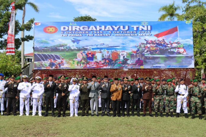 Mengusung tema “TNI Prima – TNI Rakyat – Indonesia Maju”, peringatan HUT TNI tahun ini menggambarkan tekad TNI untuk terus bersikap profesional, tangguh, dan bersatu dalam mengawal kemajuan bangsa. Bertindak sebagai inspektur upacara, Dandim 1305/BT Letkol Inf. Aryanto Rolando, S.I.P., membacakan amanat Panglima TNI yang menekankan pentingnya sinergitas lintas sektor dalam menjaga persatuan, serta meningkatkan peran TNI dalam mendukung pembangunan nasional dan kesejahteraan rakyat.