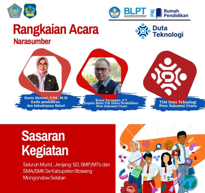 DetailNews.id – Dalam upaya mendorong percepatan transformasi digital di sektor pendidikan, Dinas Pendidikan dan Kebudayaan (Disdikbud) Kabupaten Bolaang Mongondow Selatan (Bolsel) bekerja sama dengan Balai Teknologi Informasi dan Komunikasi Pendidikan (TIKP) Provinsi Sulawesi Utara serta Duta Teknologi Kemendikbudristek menggelar Sosialisasi Aplikasi Ruang Murid secara daring, Kamis (25/09/2025).
