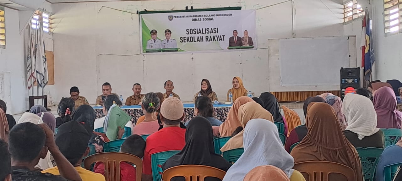 DetailNews.id, Bolmong – Kegiatan sosialisasi program Sekolah Rakyat digelar di Balai Desa Langagon Induk, Kecamatan Bolaang, pada Senin (24/11/25) siang. Acara ini dihadiri oleh Kepala Dinas Sosial Bolmong Erni Mokoginta, Camat Bolaang, Noni K. Tohis, SIK serta para sangadi se-Kecamatan Bolaang.