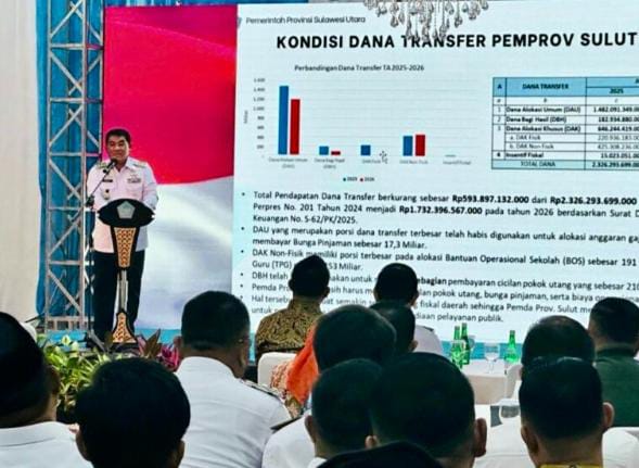 Gubernur juga menyampaikan data faktual kondisi pembangunan dan fiskal Sulawesi Utara, sekaligus menanggapi dinamika pernyataan seorang anggota DPR RI. Ia menekankan bahwa Sulut tidak boleh menyerah dan harus terus mencari inovasi pembiayaan pembangunan.