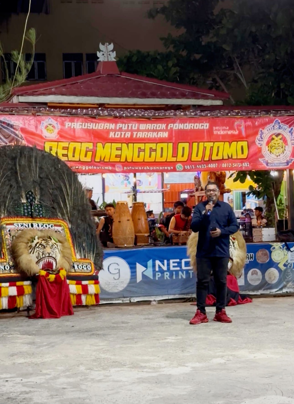 DetailNews.id, Tarakan – Gebyar Budaya yang menghadirkan pertunjukan Seni Reog Ponorogo, Reog Menggolo Utomo sebagai wujud pelestarian budaya sekaligus menyambut Bulan Suci Ramadhan 1447 Hijriah berlangsung di Gila Jalatama Foodcourt, Kota Tarakan, Jumat (13/2/2026) malam.