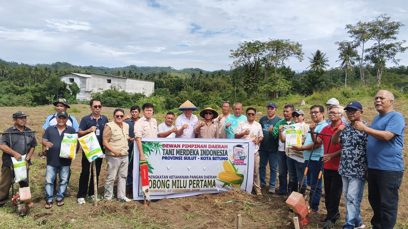 DetailNews.id, Bitung – Dewan Pimpinan Daerah (DPD) Tani Merdeka Indonesia (TMI) Kota Bitung melaksanakan penanaman jagung perdana di lahan perkebunan Milu, Kecamatan Ranowulu, Kota Bitung. Kegiatan ini menjadi langkah awal penguatan ketahanan pangan sekaligus pemberdayaan petani melalui aktivitas produksi langsung di lapangan. Sabtu (13/12/2025)