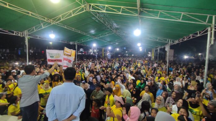 DetailNews.id – Ribuan warga Mogolaing membanjiri area, mengekspresikan dukungan penuh dengan sorakan dan yel-yel membahana, menegaskan bahwa tak ada ruang bagi paslon lain untuk mencuri simpati di wilayah ini. Kampanye dialogis pasangan calon Walikota dan Wakil Walikota Kotamobagu, dr Wenny Gaib dan Rendy Virgiawan Mangkat yang dijuluki “The Winner,” memecah suasana lapangan Kelurahan Mogolaing, Kotamobagu Barat.