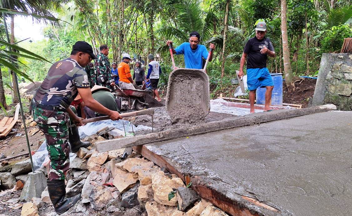 TNI dan Warga Kalurahan Gotakan Kebut Pengerjaan Fisik TMMD Kodim 0731/KP