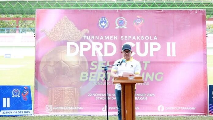 DetailNews.id, Tarakan – Wali Kota Tarakan, dr. H. Khairul, M.Kes, secara resmi membuka Turnamen DPRD Cup II Tahun 2025 di Stadion Datu Adil, Sabtu (22/11/2025). Ajang bergengsi tingkat kota ini kembali digelar sebagai wadah pengembangan potensi atlet sepak bola lokal.