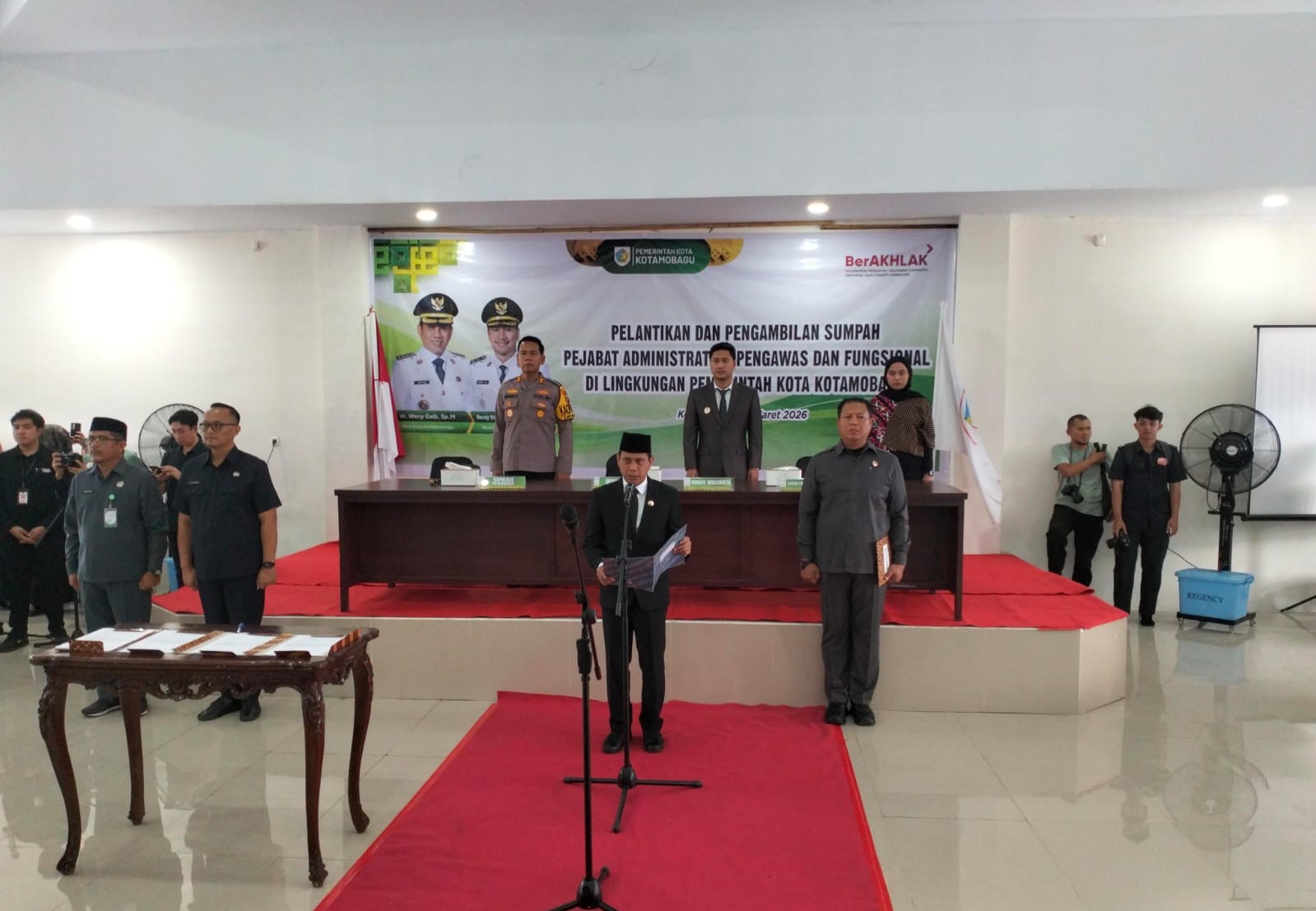 Pelantikan digelar di Aula Gedung Dinas Kearsipan dan Perpustakaan Kota Kotamobagu sebagai bagian dari upaya memperkuat struktur organisasi sekaligus meningkatkan efektivitas kinerja aparatur sipil negara (ASN) di lingkup Pemkot Kotamobagu.