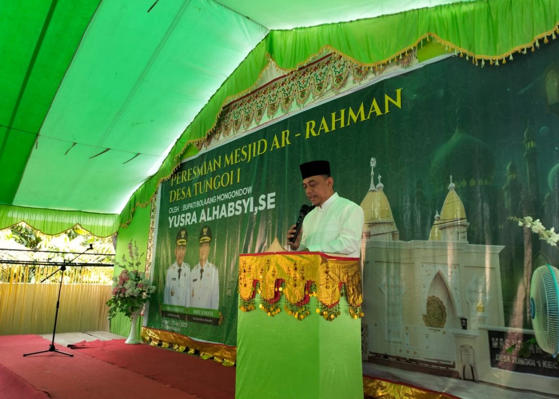 DetailNews.id – Bupati Bolaang Mongondow (Bolmong) Yusra Alhabsyi meresmikan Masjid Ar-Rahman Desa Tungoi Satu, Kecamatan Lolayan, Pada Minggu (20/04/2025).